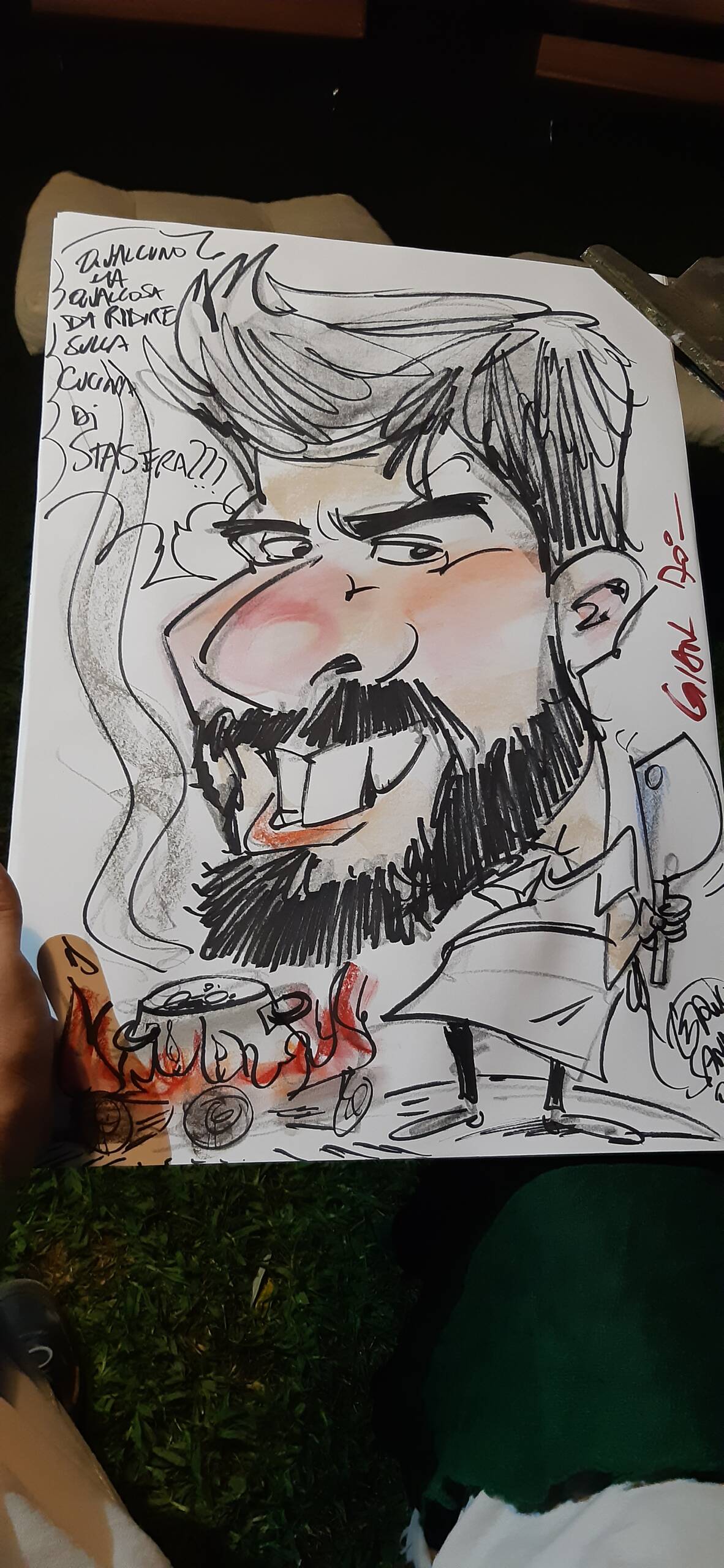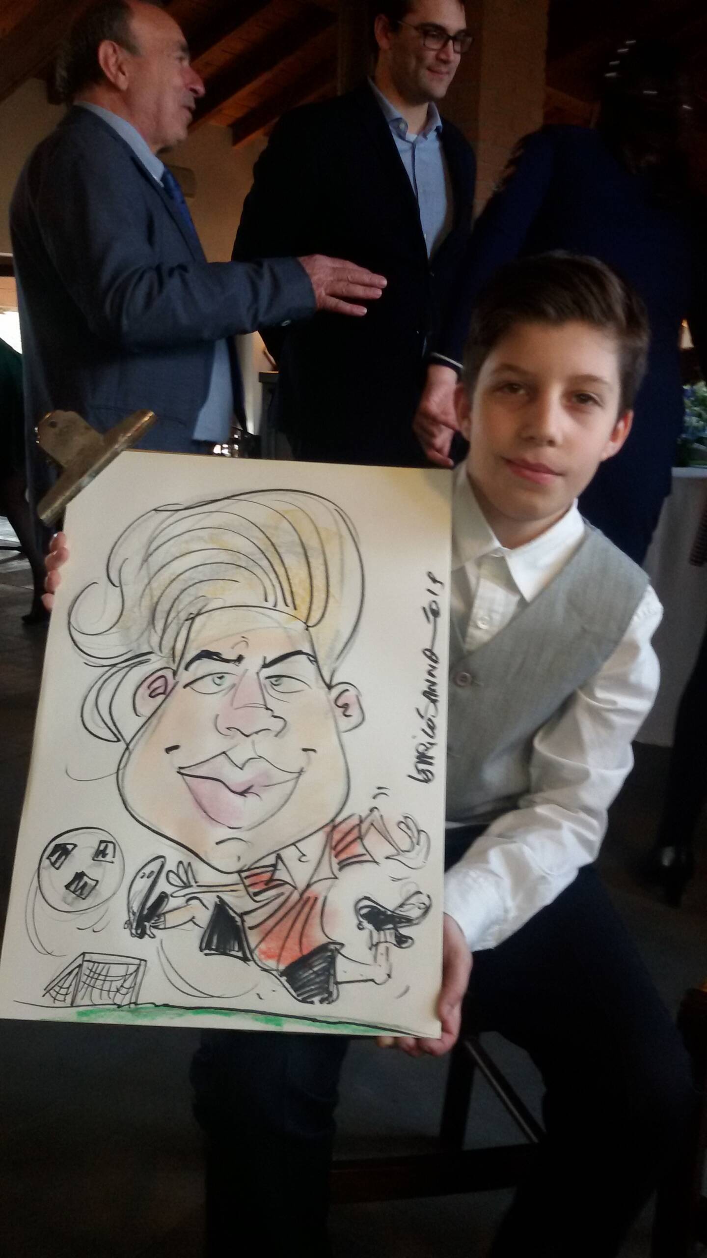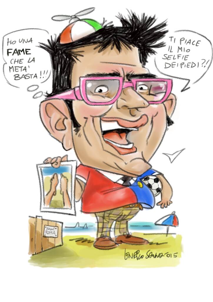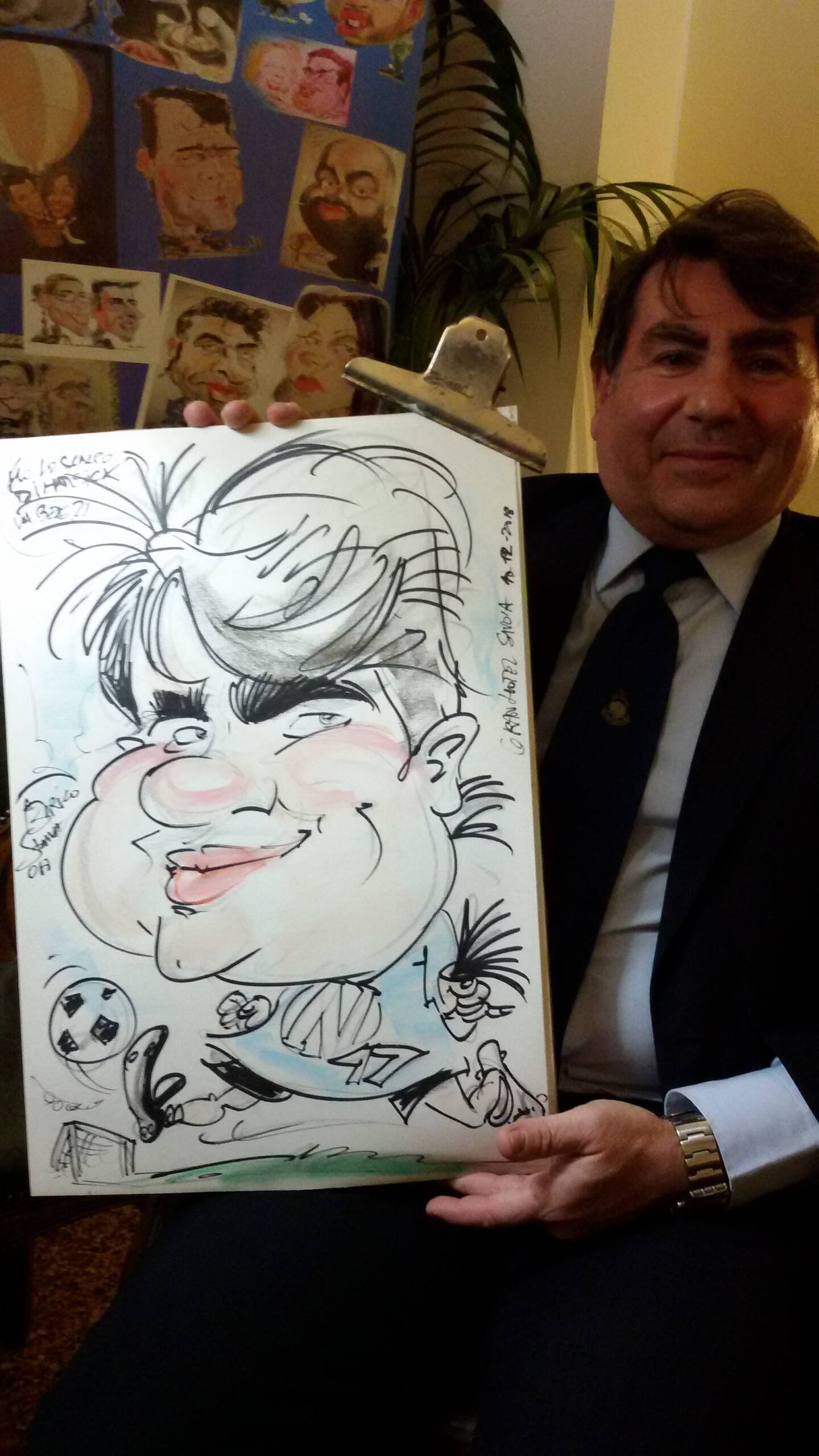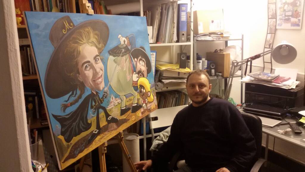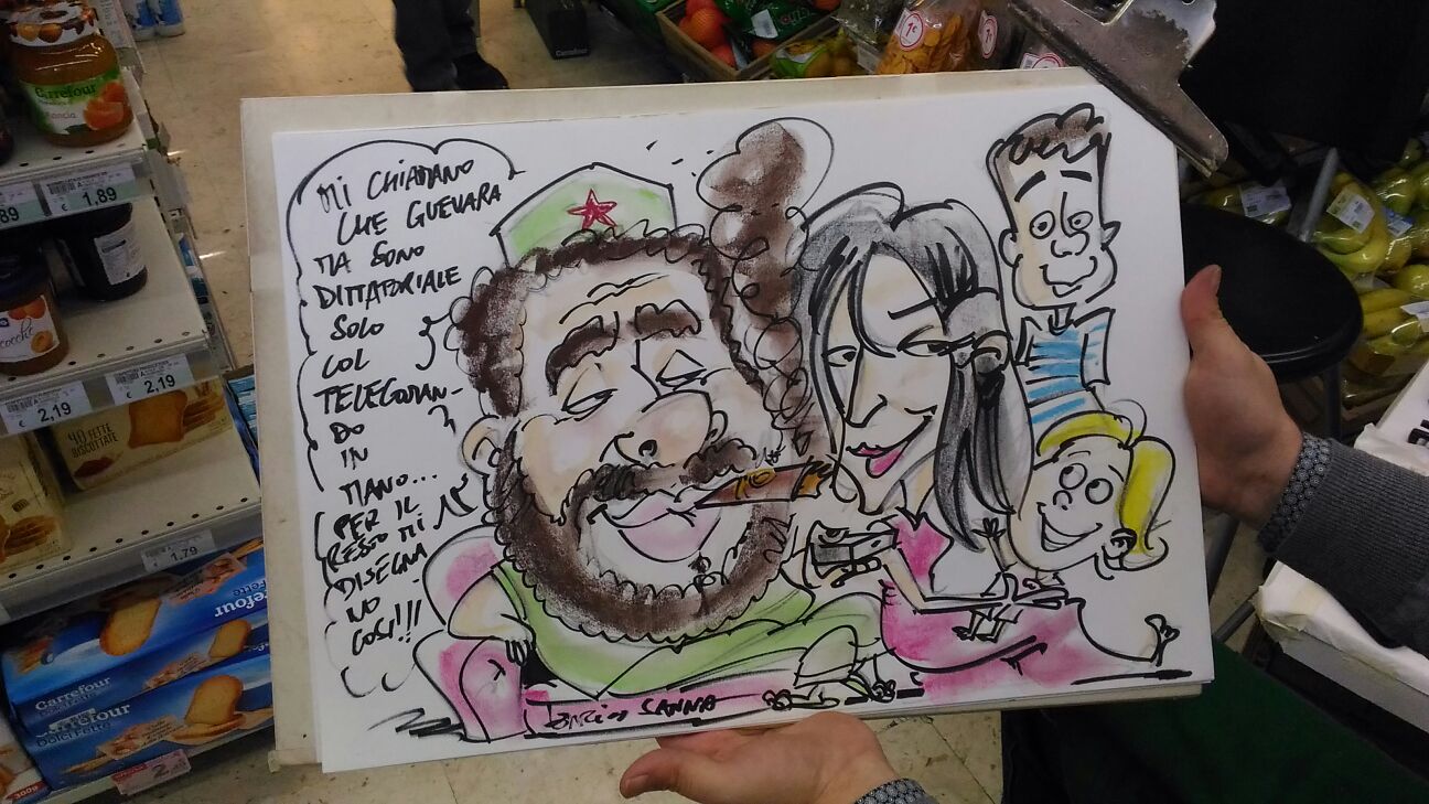 Da piccolo ho sempre disegnato tanto e di tutto. Disegnavo spesso figure caricaturali, qualche volta anche quelle dei compagni di gioco, delle maestre etc…Una svolta vera e propria ci fu a 9 anni quando incrociai le bellissime caricature di Walter Molino nell’ultima pagina de l’intrepido e de il monello durante i mondiali dell’’82, fu una sorpresa per me incredibile. Mi attirarono molto per il realismo dei volti e i particolari così ben risolti. Fu amore a prima vista. Ebbero una presa talmente forte su di me che le copiai a più non posso approfittando di una lunga degenza all’ospedale pediatrico Gaslini per un problema renale. Devo a loro parte del mio successo come caricaturista.