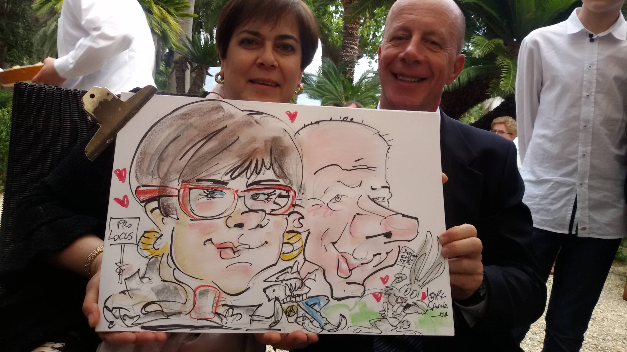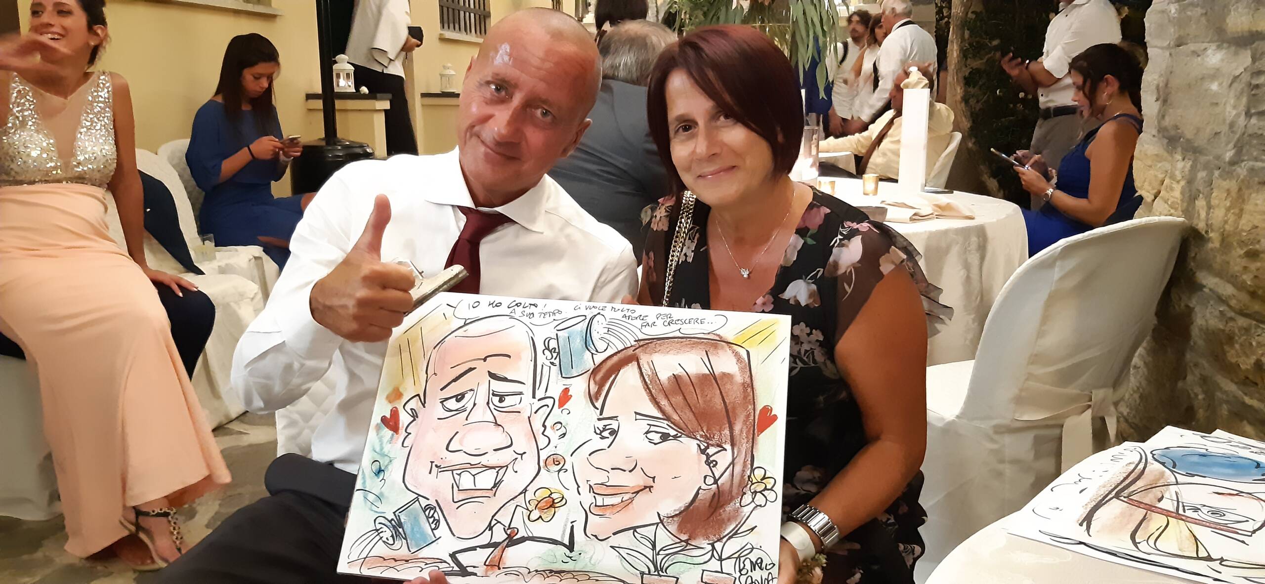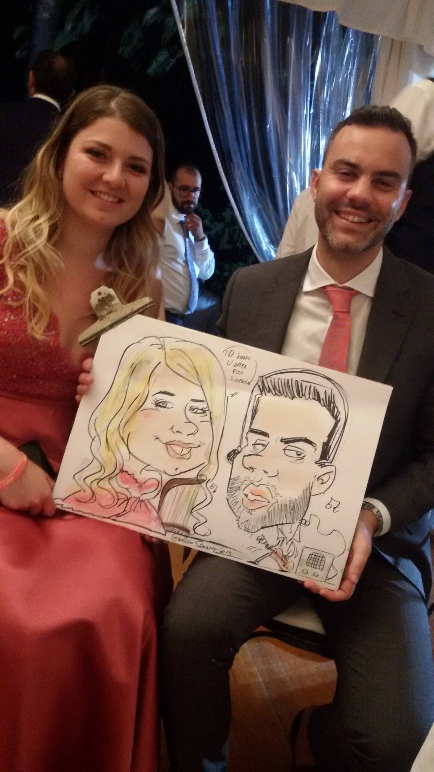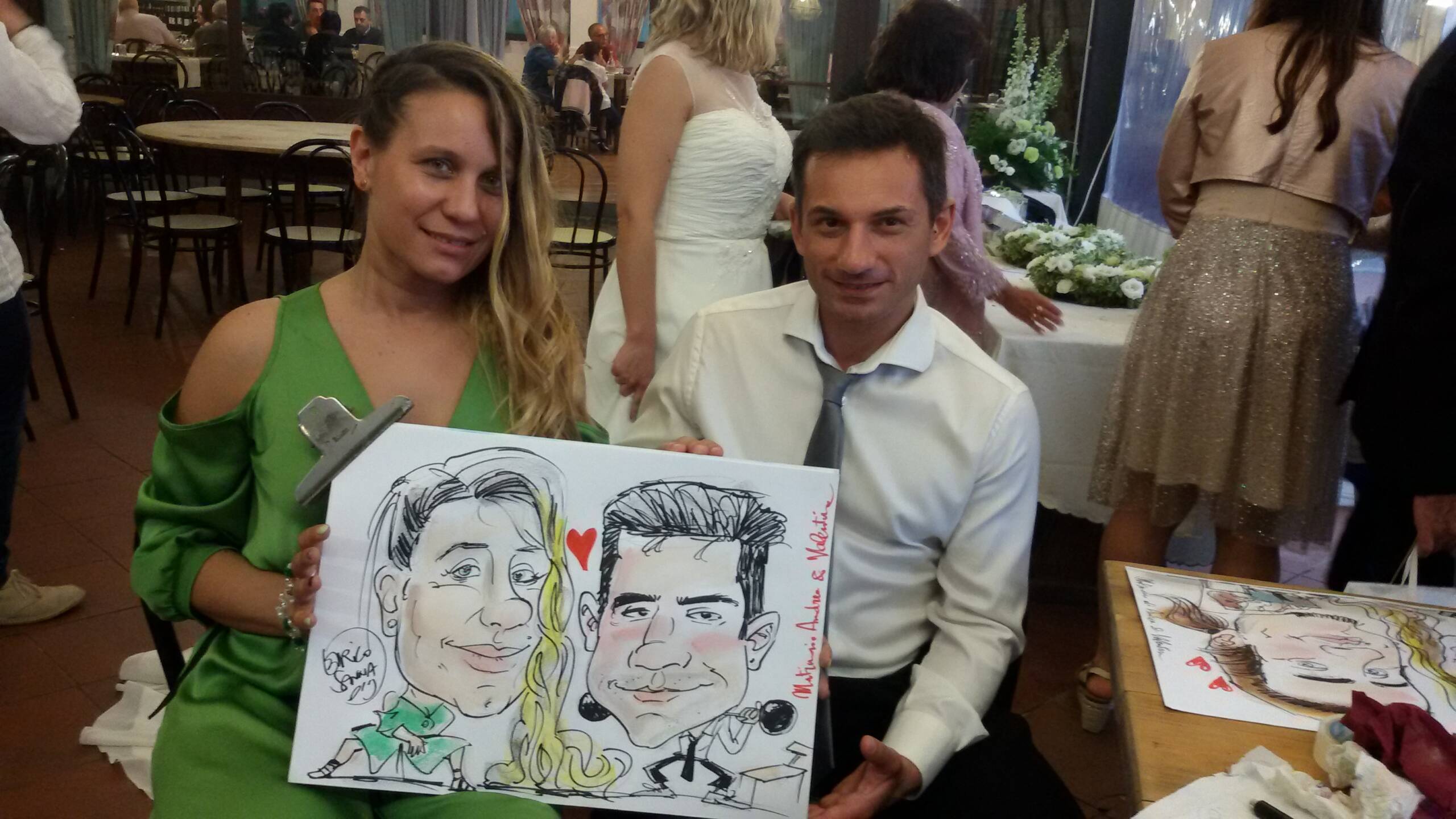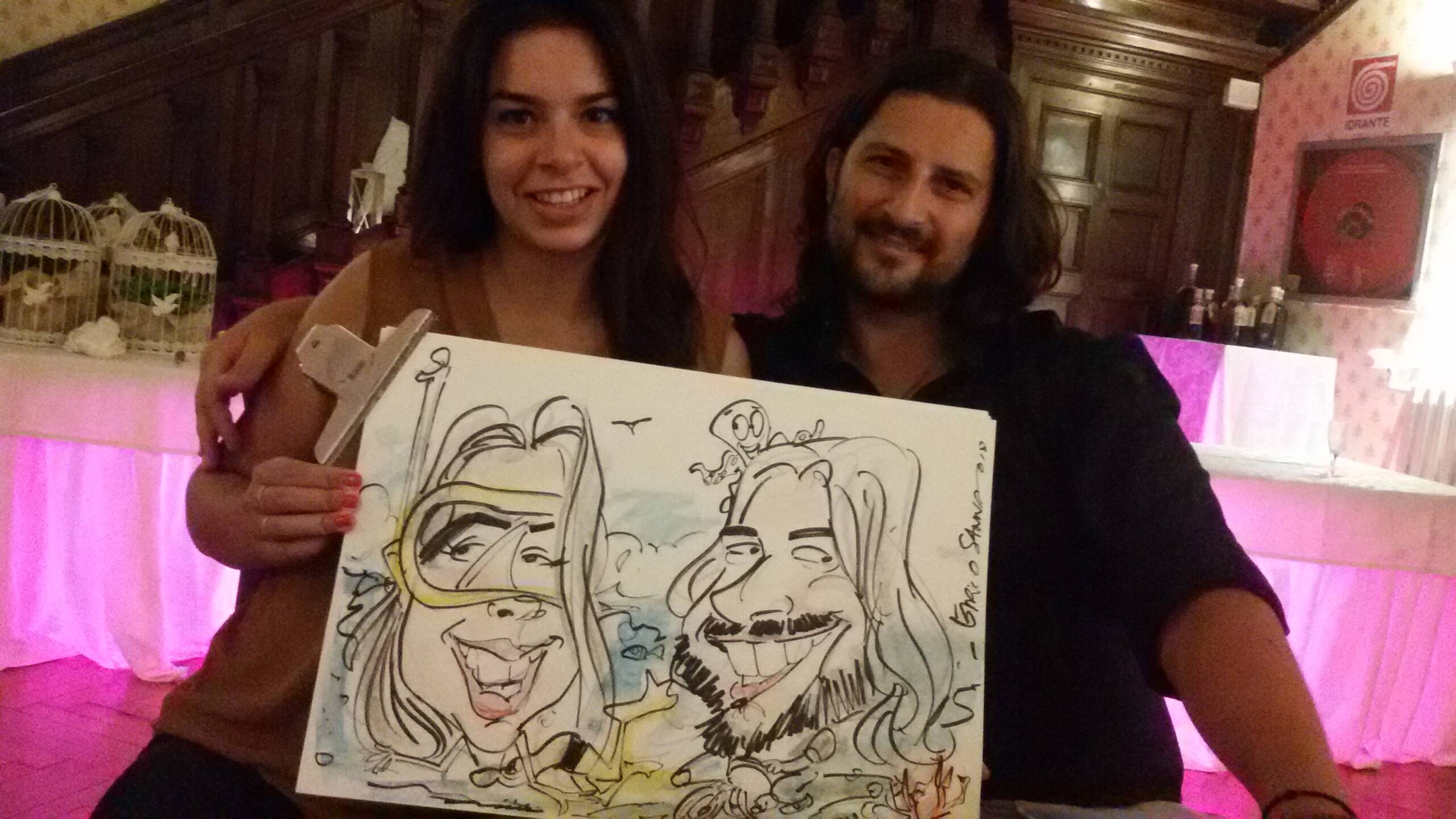 Attualmente collaboro da circa 20 anni con alberghi, wedding planner, catering e sono ingaggiato da privati per feste ed eventi. Resto a disposizione durante il ricevimento, per disegnare caricature agli invitati, che avranno così un ricordo indelebile del loro matrimonio! Disegno inoltre, su commissione, tableau nuziali, partecipazioni, caricature per anniversari, compleanni, onomastici o eventi in generale mediante tecniche di disegno, pittoriche o digitali utilizzando programmi professionali.