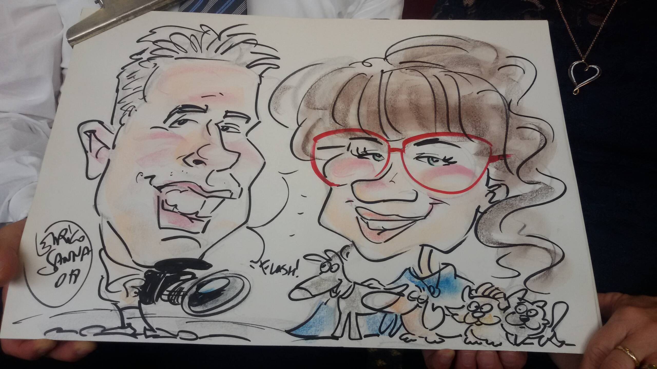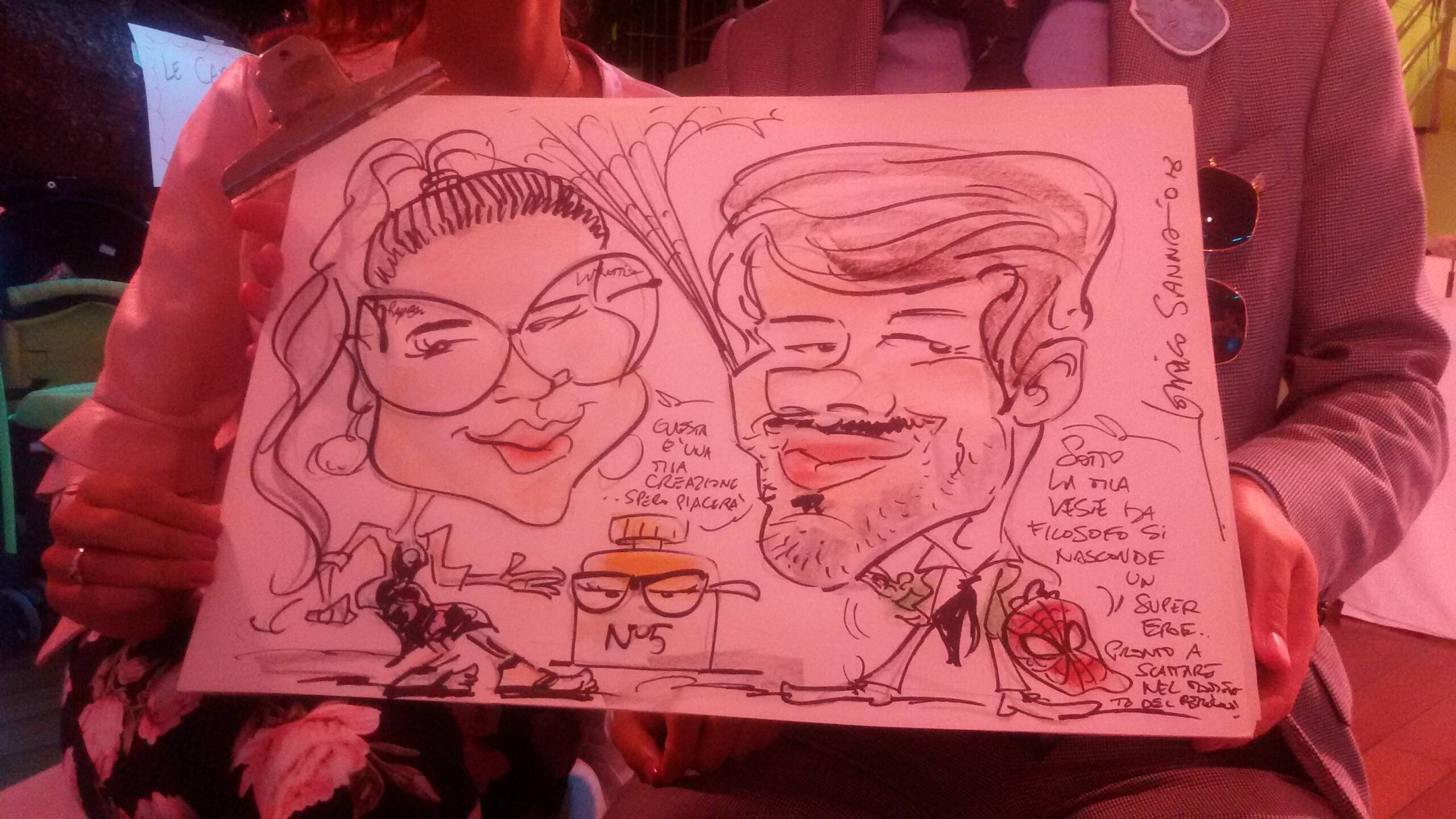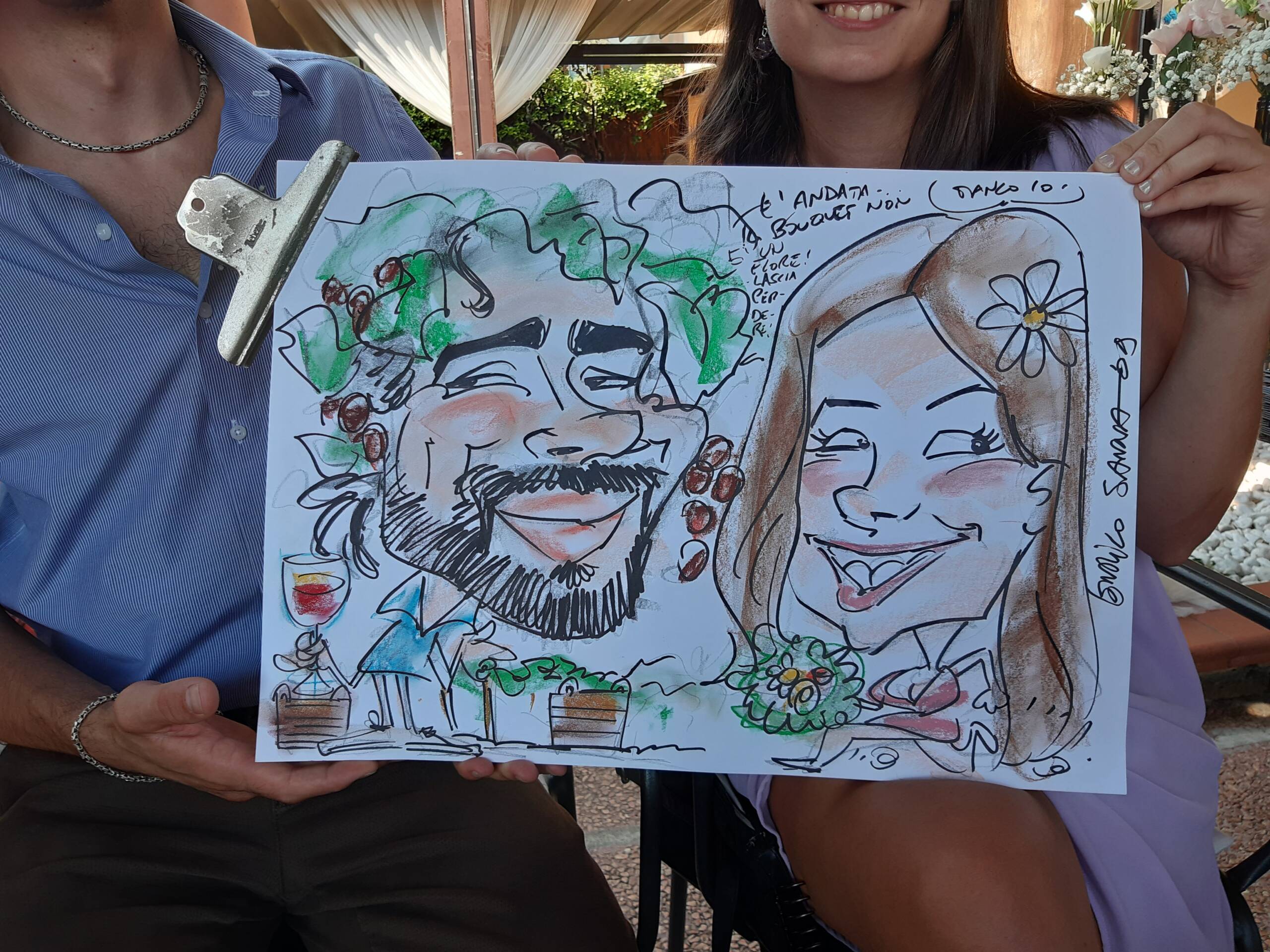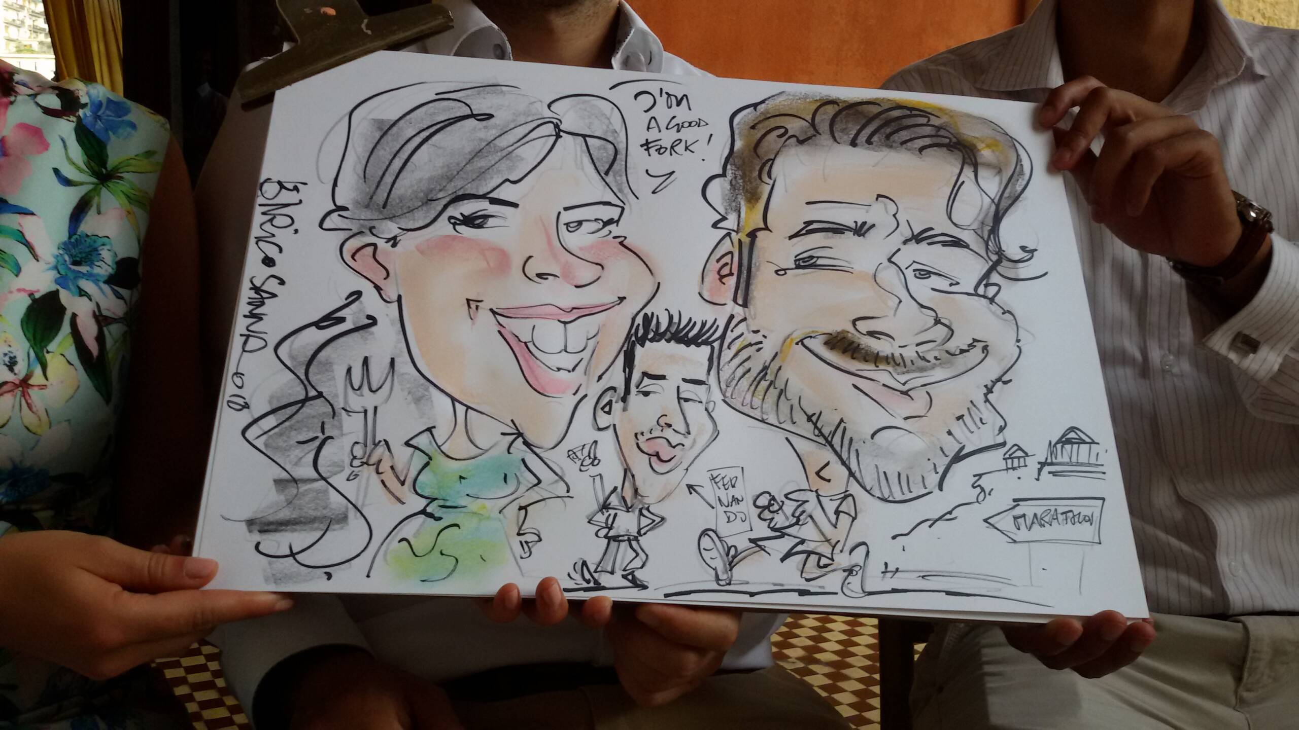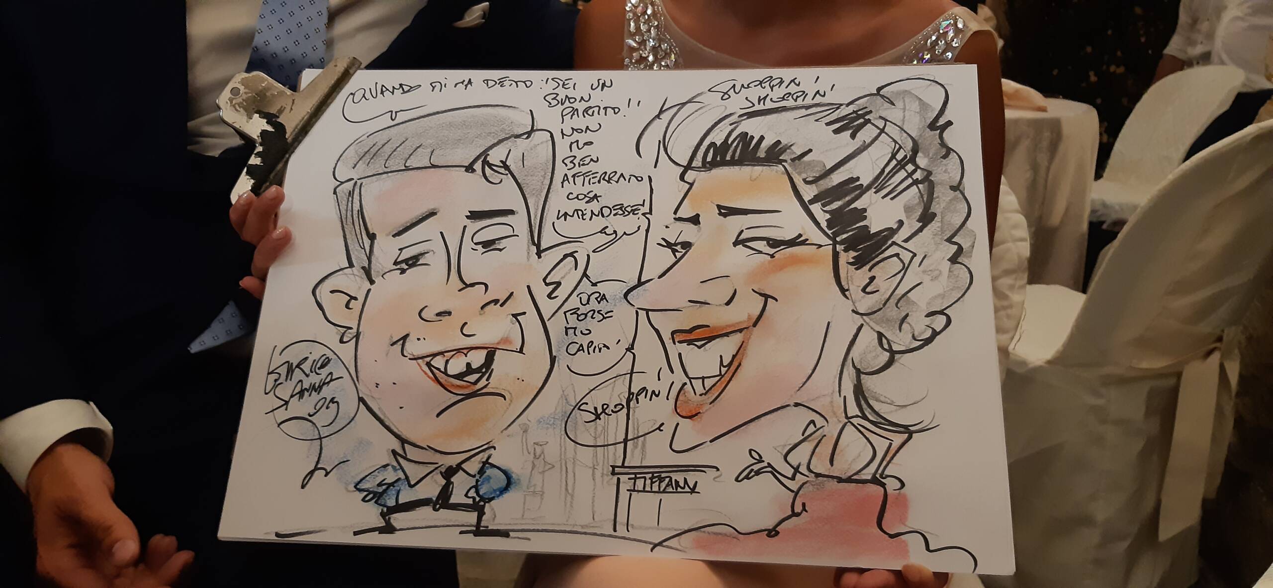 Le commissioni di caricature sono parte del mio lavoro come caricaturista soprattutto ai matrimoni e agli eventi; molte di queste si devono al passaparola e alla fiducia del cliente che ha pensato di affidarmi qualche regalo da fare a conoscenti.
